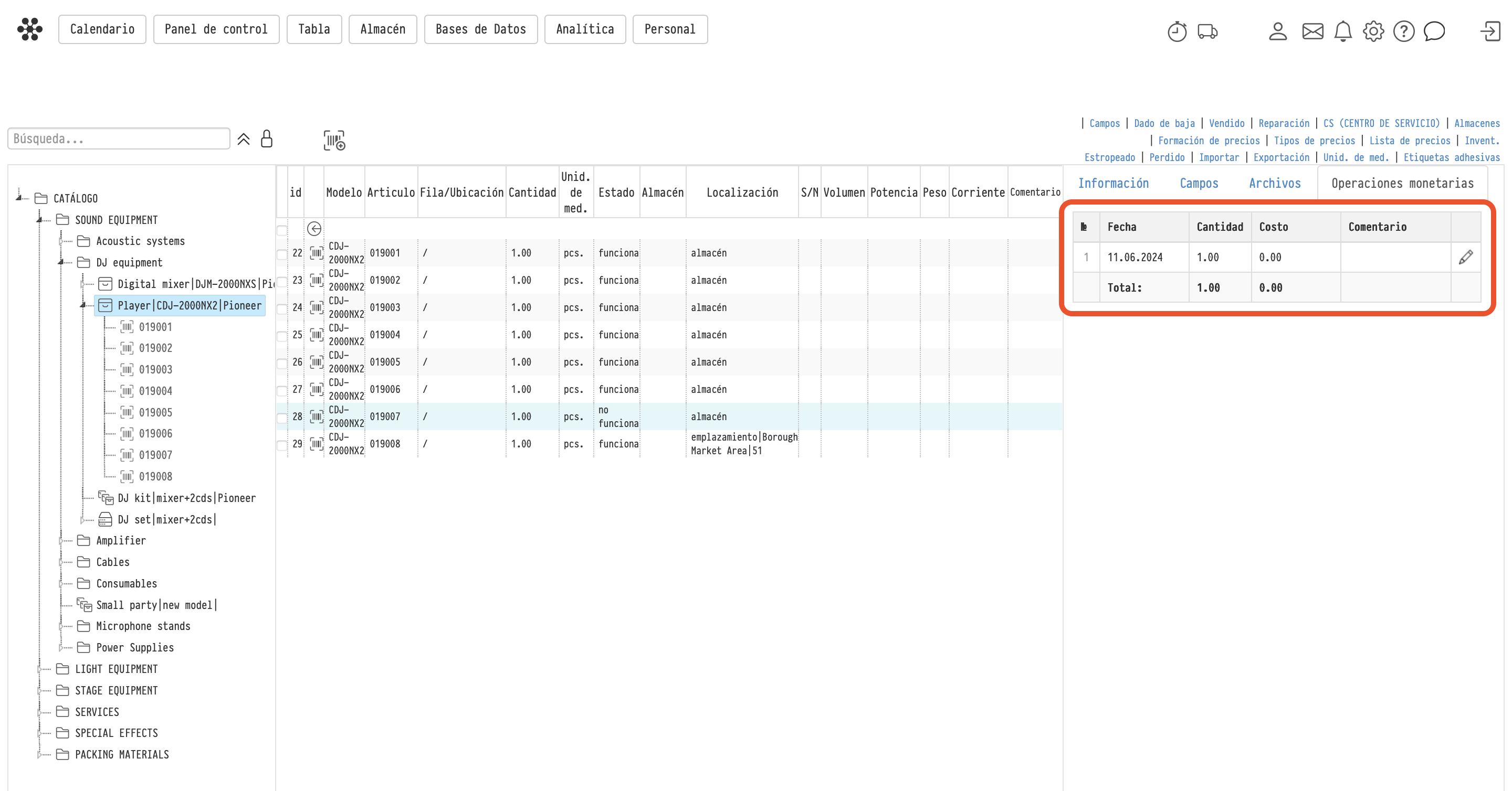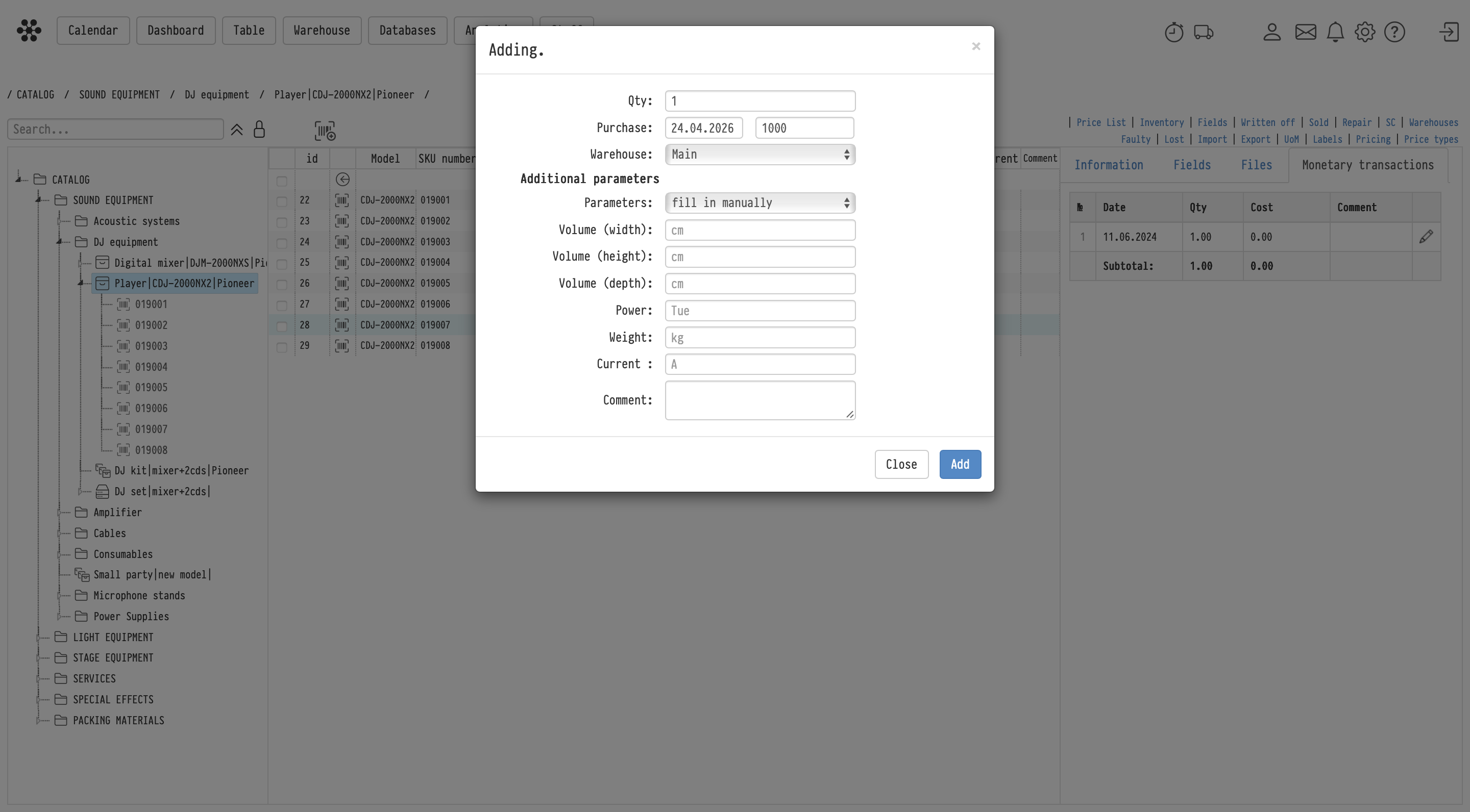 - for components and consumables — you can edit all fields of the record and delete it