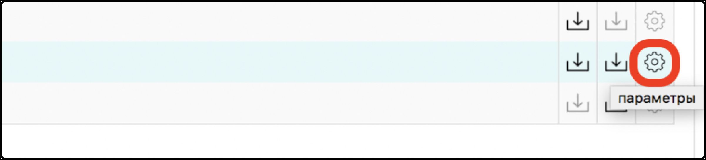 To customize the content and appearance of the document, click on the "gear" symbol in the rightmost column of each row of the table
