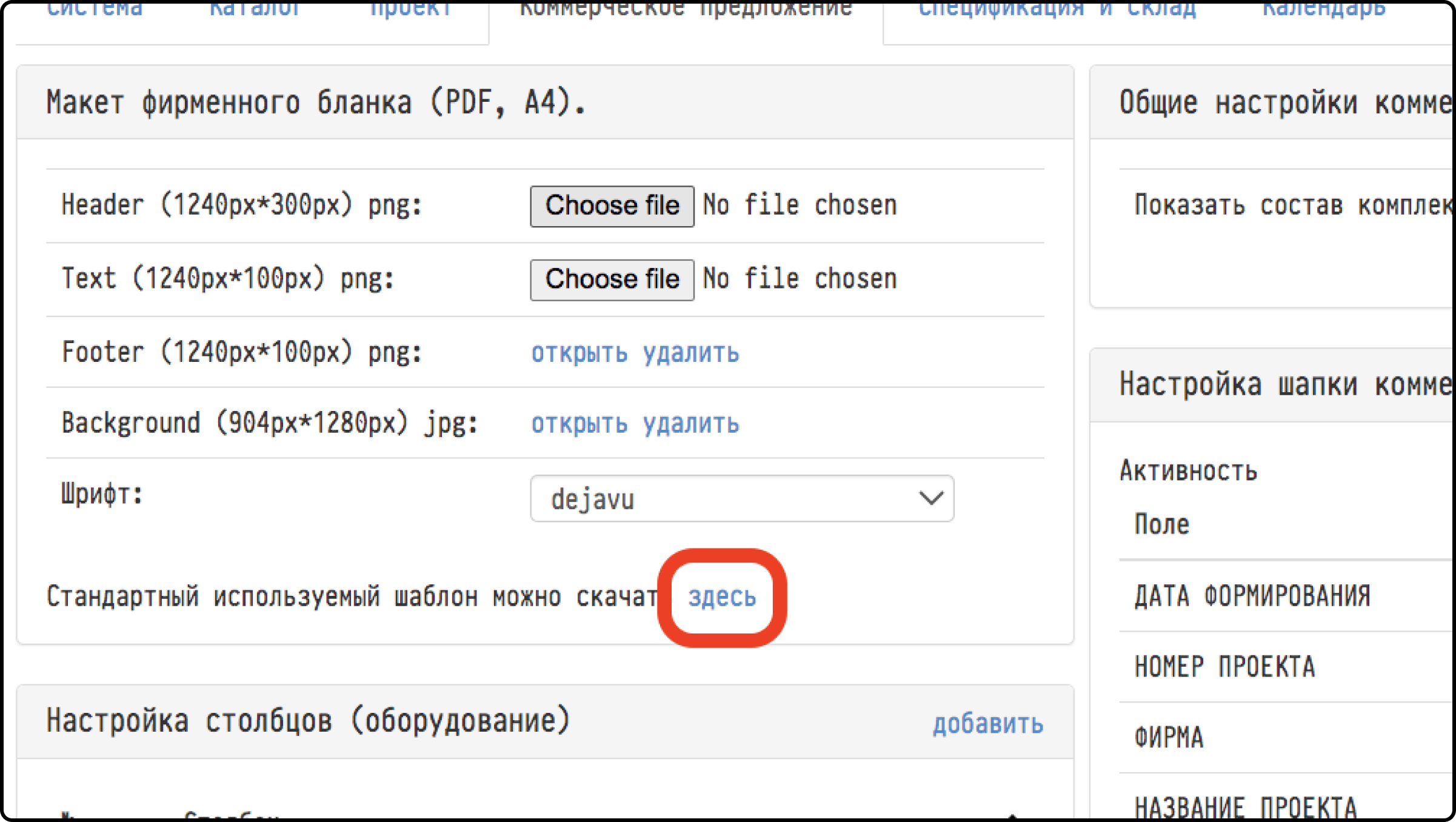 Now, if you enter any project in the "Estimate" section and display a commercial offer, it will contain the components of your letterhead that have just been uploaded.